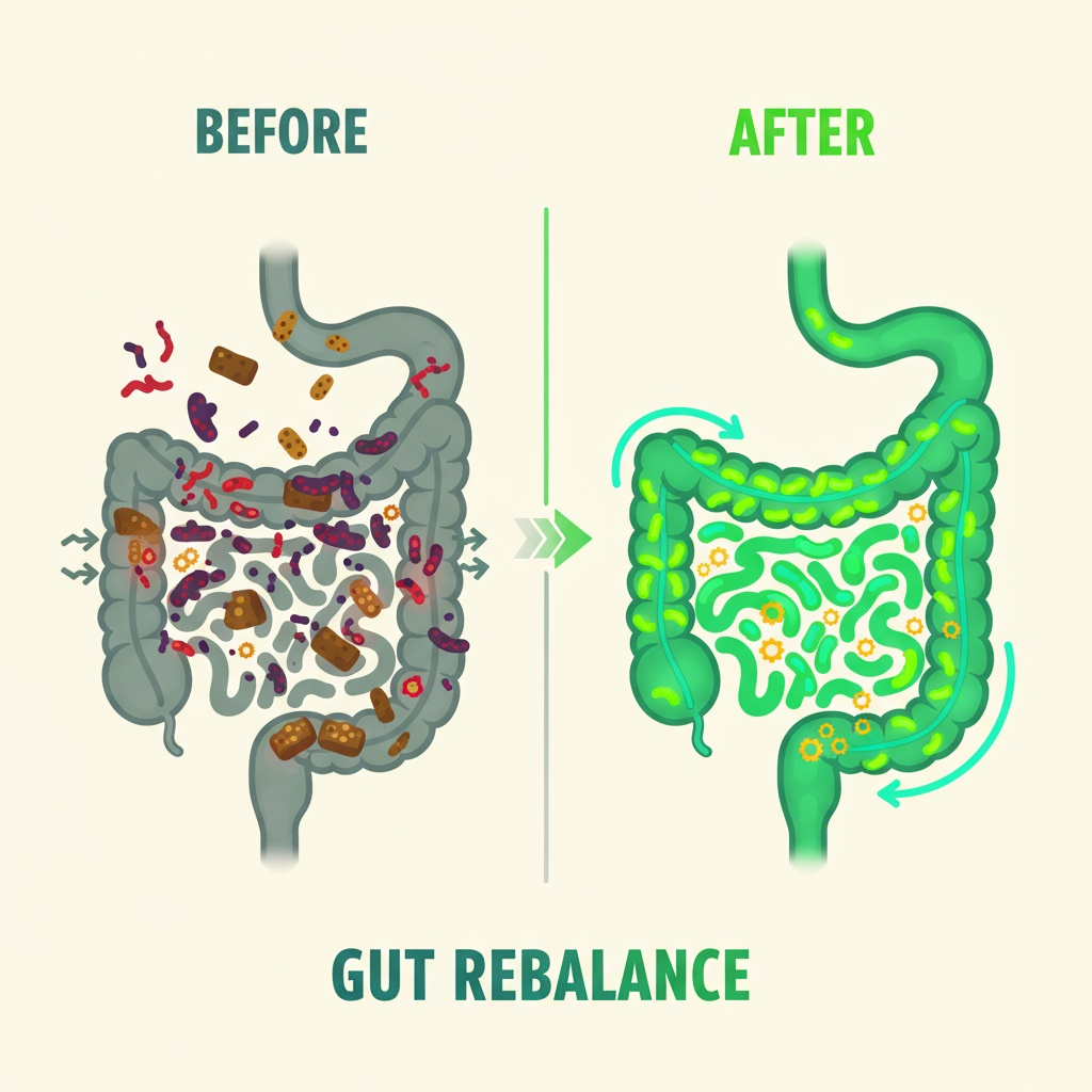 You need something that addresses the ROOT causes: imbalanced flora, poor enzyme function, and gut stagnation.