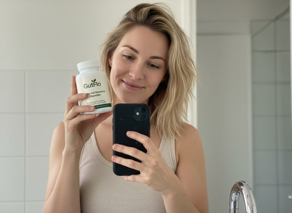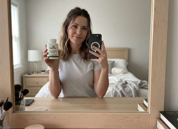 "I used to wake up flat and by dinner I'd look 6 months pregnant. It was devastating. I avoided fitted clothes and going out at night. GutFlo changed everything in 2 weeks. My bloating is 90% gone and I actually have my confidence back."